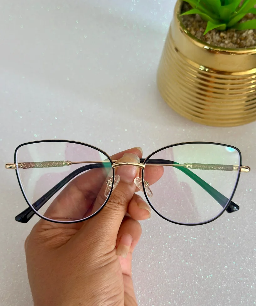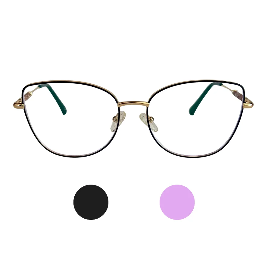 Número de modelo: Cat Eye Glasses 255 Altura del lente: 46mm Anchura del lente: 63mm Material del marco: ACERO INOXIDABLE Material de las lentes: Poli estireno Atributo de las lentes ópticas: Anti luz azul Incluido estuche y franela.