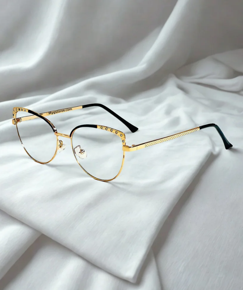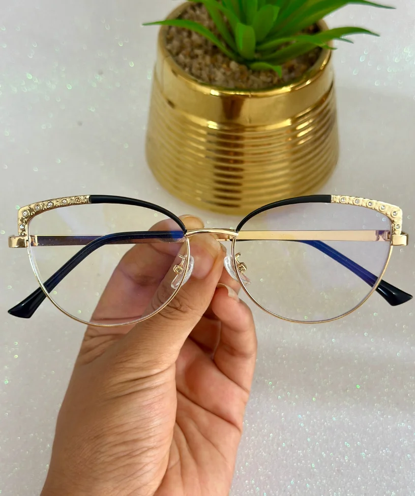 Negro Elegante: Para un estilo atemporal, elige los lentes negros. Las esquinas brillantes añaden un toque de glamour discreto, perfecto para cualquier ocasión.