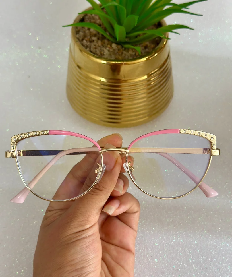 Rosado Encantador: Si buscas un toque femenino, los lentes rosados son ideales. El diseño clásico se combina con sutiles brillos para un look encantador y relajado.